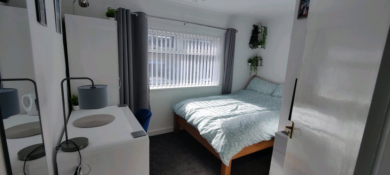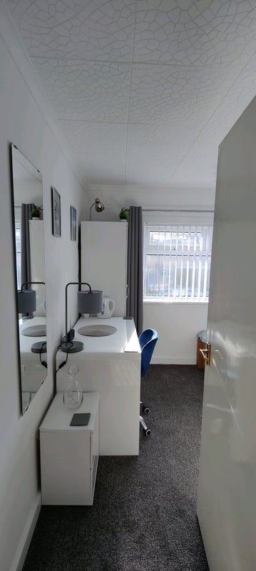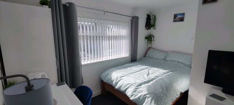 Freshly decorated with all new furniture and carpet. Bed and bedding brand new. 32 inch smart FHD TV.