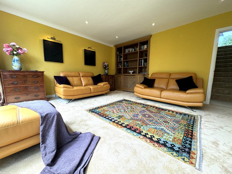 Sliding doors let the outside into the kitchen/dining area, leading directly onto a large modern patio with glass frontage, overlooking lawns, the Bollin and a spectacular conservation area. Fabulous for enjoying breakfast and coffee in the morning or dinner in the evening. Here you can subsume to nature, submitting any cares and stresses to the soothing waters of the Bollin. You may catch sight of some fish or even the herons which seem to have made this stretch of the river a regular place to visit.