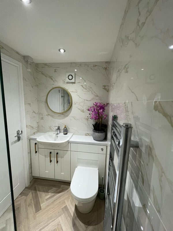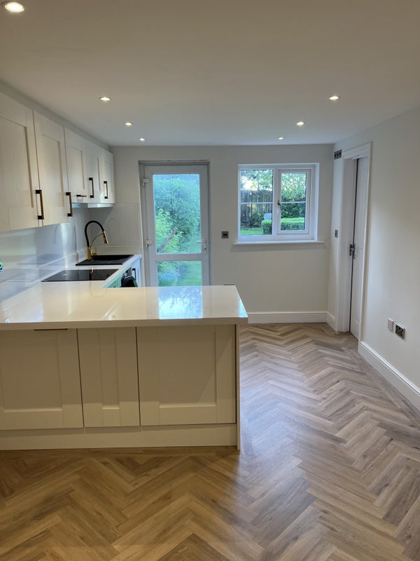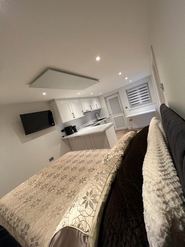 Hi, this modern new self-contained garage converted room with attached shower room. This self-contained studio is built on building regs, with a full kitchen . It is equipped with high end brand appliances, just as bosch and aeg hob , oven and extractor.