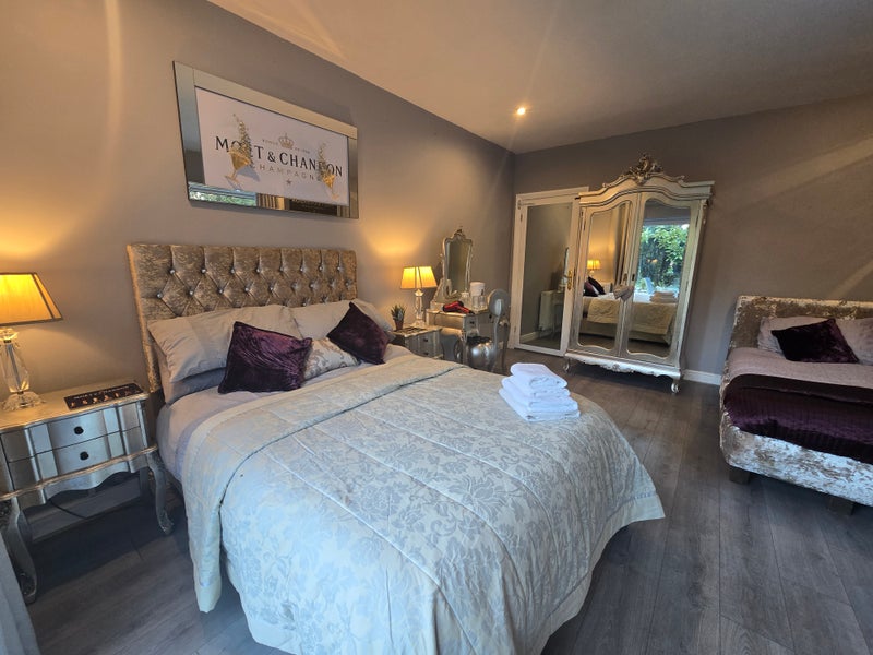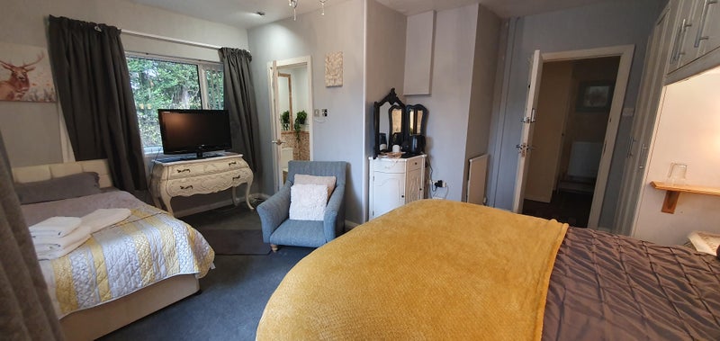 I have 4 rooms available 2 share a bathroom between them and the other two are ensuite. The two ground floor ensuite rooms have a double bed and single bed and can comfortably accommodate 3 people.