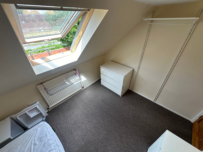 We have a great value room available in this friendly shared house. Furnishings include a single bed, desk and chair, chest of drawers and a handy clothing storage system!