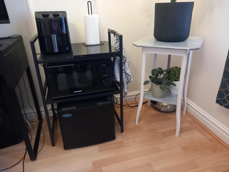 The ground floor room is for the maximum comfort of my guests. It has a small double bed (4ft) with new mattress, full size wardrobe and mirror, bedside table & lamp, desk n office chair with boosted internet access, a dining table with 2 chairs is provided. Plus a smart TV with Netflix, tea and coffee making facilities, along with a bedroom fridge, microwave n air fryer for your convenience.