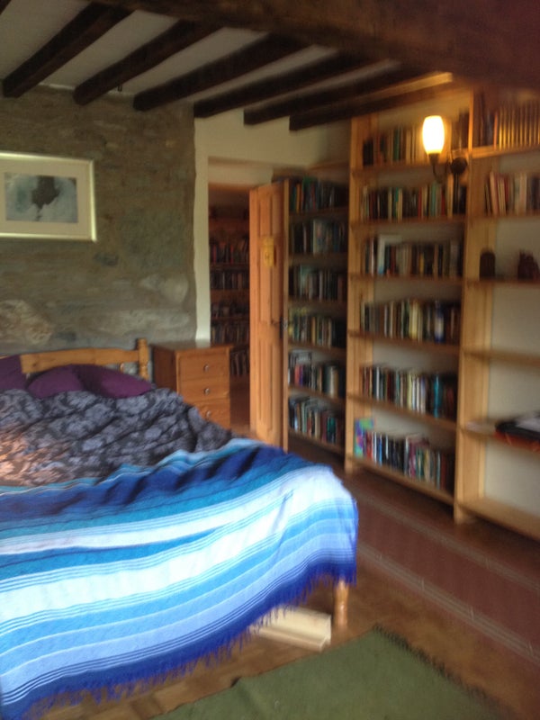 Large spacious ground floor double room complete with characteristic wood floors, stone walls and beamed ceilings and electric heating with a large picture window looking out at well kept beautiful gardens - shared facilities are well equipped kitchen, lounge/sitting room, conservatory, storage barn, large gardens, parking, bathroom and shower room.