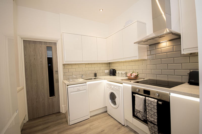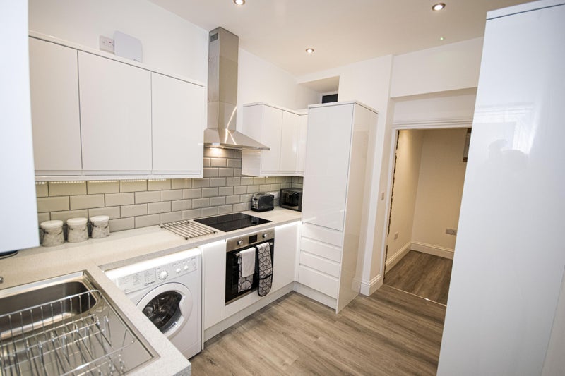 Kitchen is modern and specifically designed for house share; Including; fridge freezers, ovens, hob, lots of cupboard space and plenty of pots, pans and plates for everyone.
