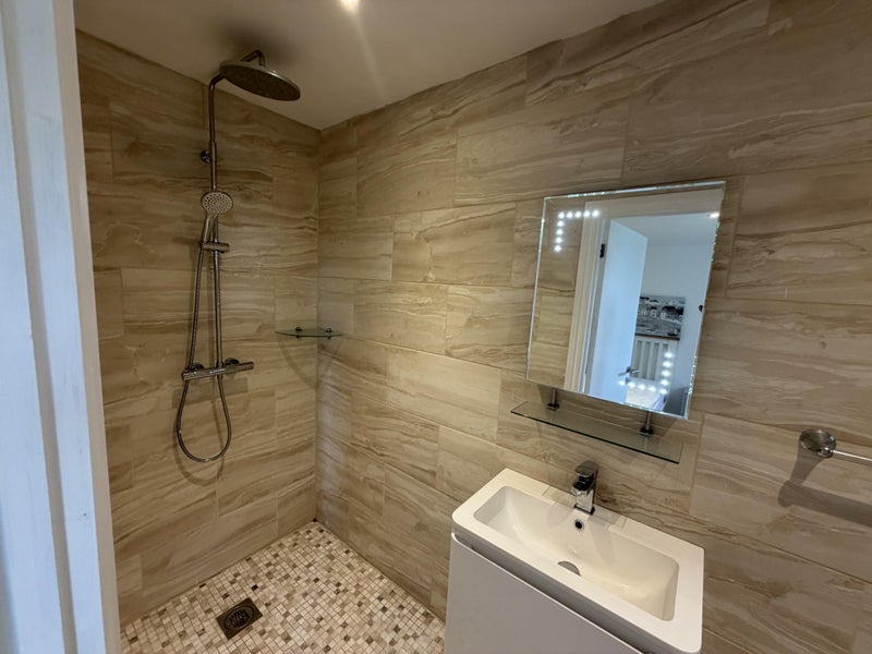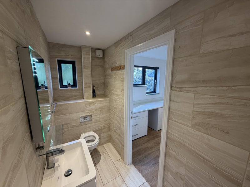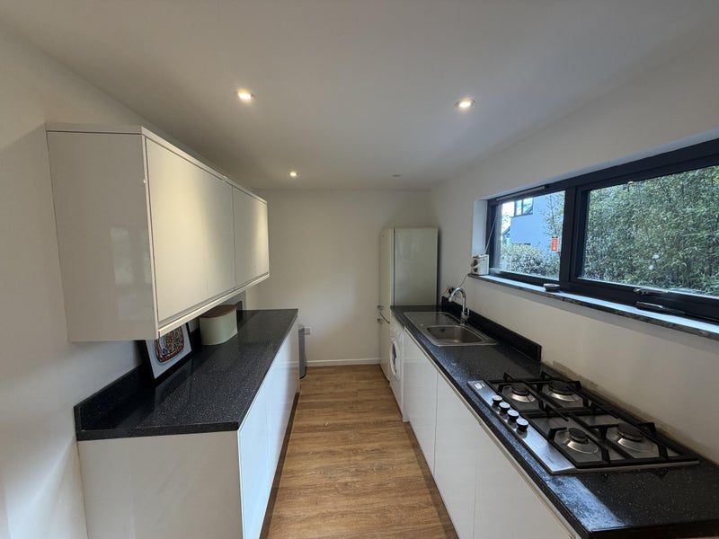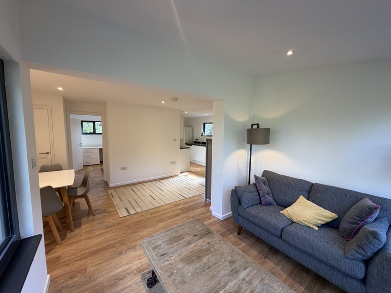 Comprises entrance hall/cloakroom, open plan kitchen/diner/living room, separate double bedroom with built-in wardrobe and en suite wetroom with shower, sink and toilet. Outdoor seating area and small garden. Off-road parking on site.