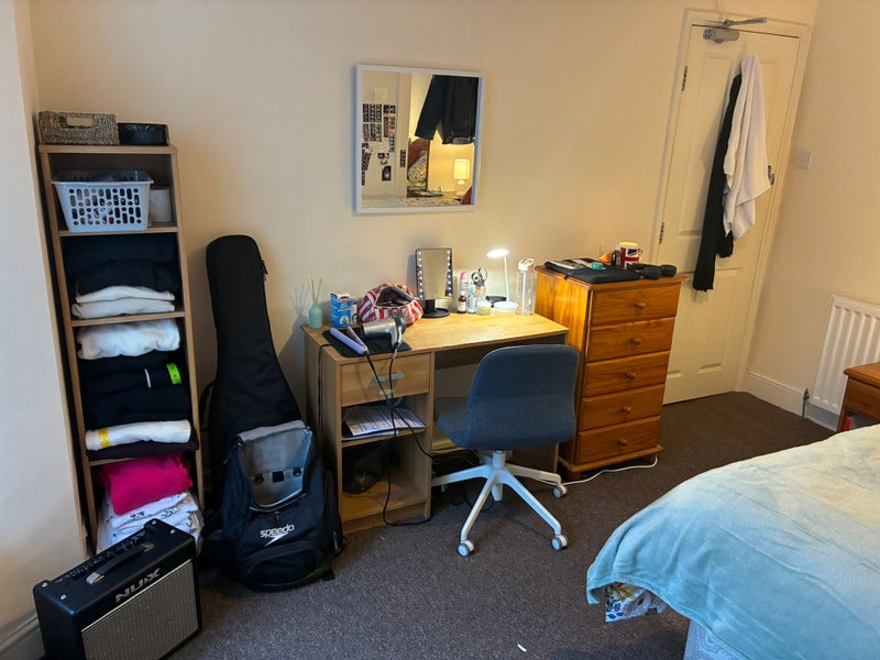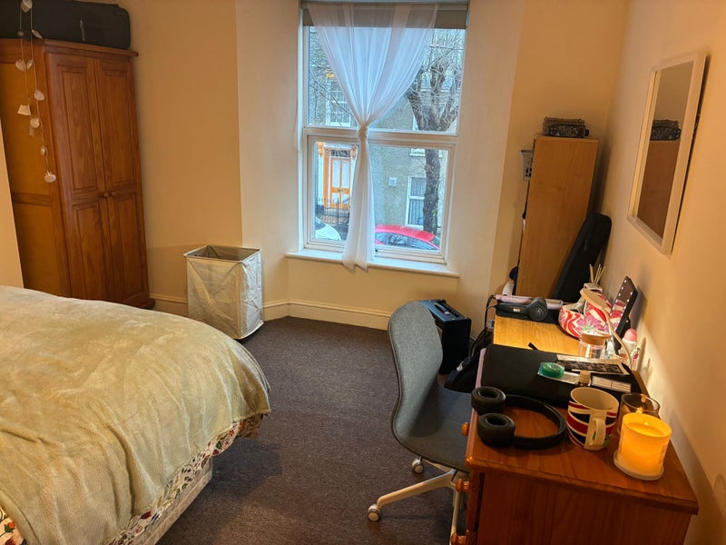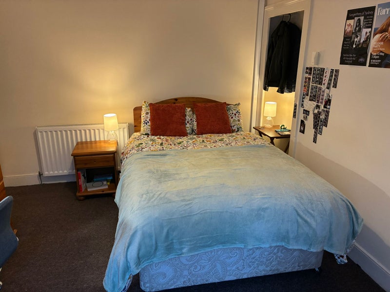 The room is lovely, bright and spacious, with a comfortable double bed and a nice view of the street. It’s a really welcoming space and a great place to live.