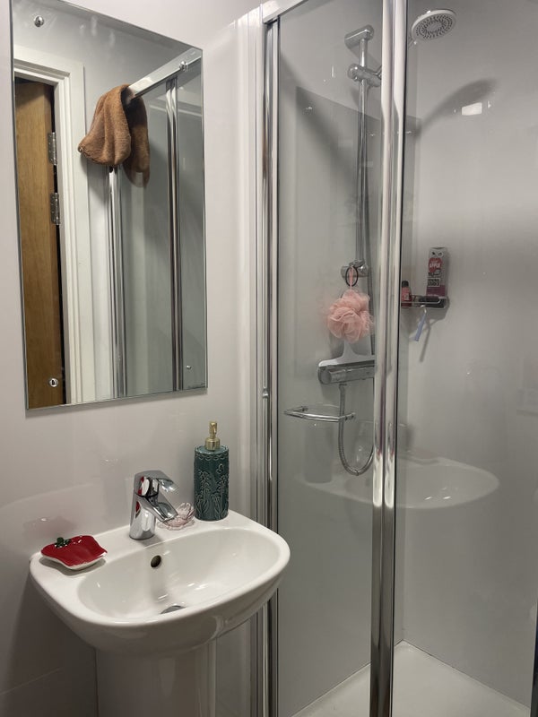 This is a shared flat with three other girls who are all very quiet and kept together. The room includes an en-suite with a high pressured shower and much shelving.