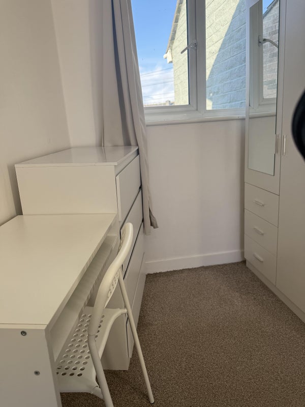 A bright and furnished double room available in a clean and quiet home, ideal for a working professional with regular office hours.