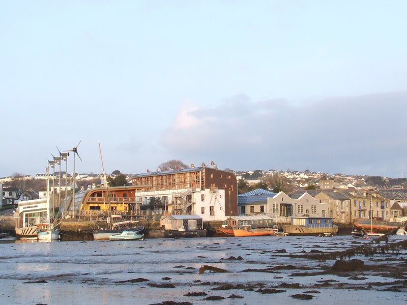 Huge houseboat available to rent. The Ark is moored in Penryn on Jubilee Wharf next to Jubilee Warehouse. Upstairs is a very large living room and kitchen. Downstairs are five double bedrooms and a bathroom. The living room has a wood burner and double doors that lead outside on to the upper deck. The modern kitchen is well equipped and has a door that also leads to the upper deck and the large roof terrace . There are magnificent views from every room. This extraordinary accommodation would ideally suit professionals looking to be on the waterfront and part of a creative community. Three bedrooms now occupied. One bedroom left.