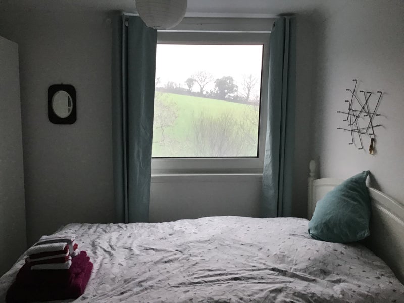 The room is at the back of the house, with rural views - a stream, trees & fields in a quiet location but within easy walking access to Tremough campus, buses, trains & supermarkets