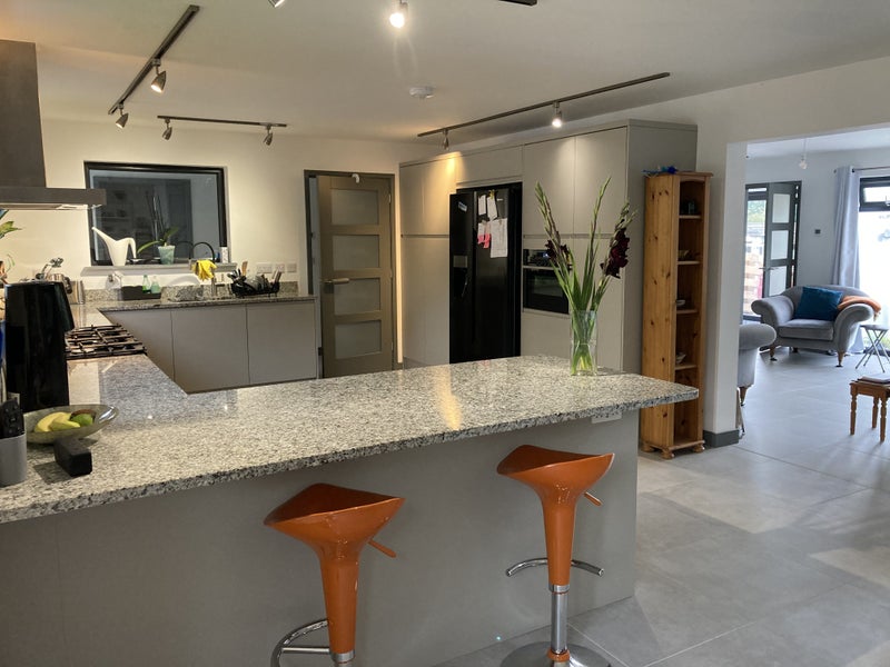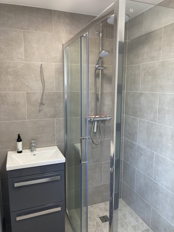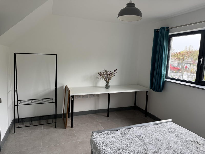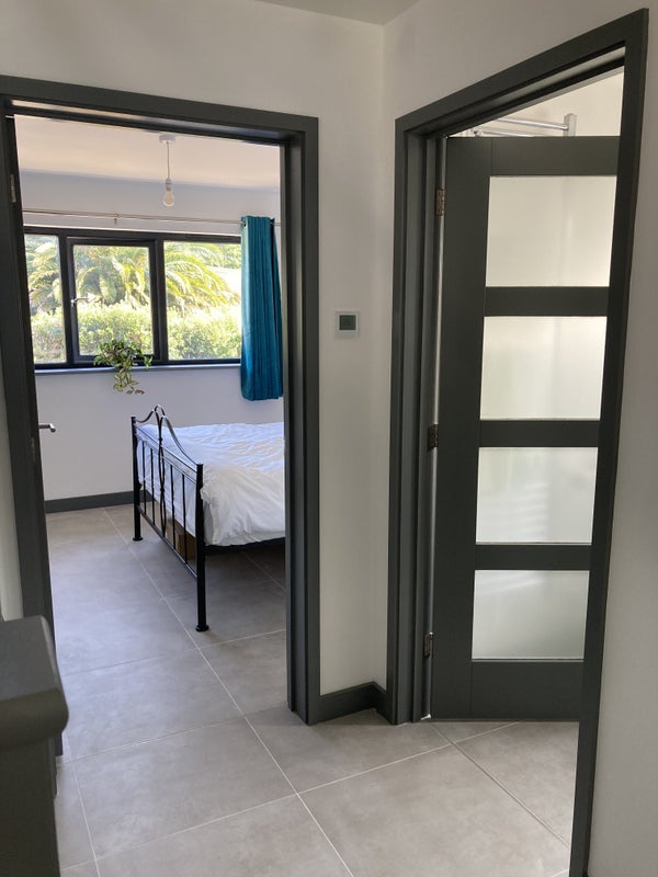 Light, bright airy double room in a modern, recently renovated house with own bathroom next to the room.
