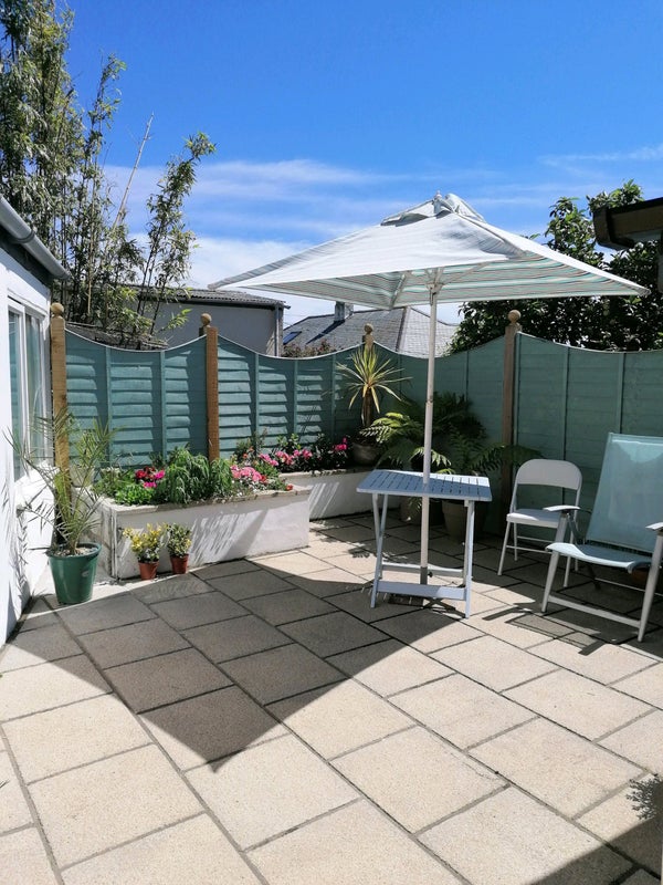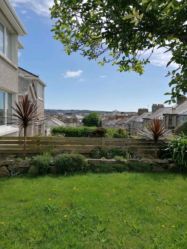 Relaxed living in my Penzance house... Quiet area near the hill fort. This room has sea views and full sun in the mornings. Large communal living/dining /kitchen and a lovely sunny back yard. Wrap around garden.