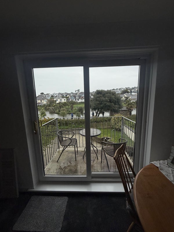 - Small balcony with seating overlooking the boating lake