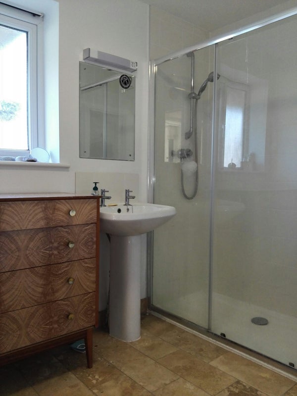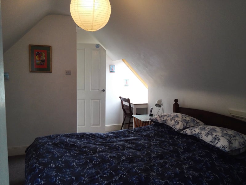 Ideal for a couple or 2 independent sharers with two bedrooms + ensuite, one upstairs, one down. Woodburner in living area, separate kitchen. Sunny garden with deck and studio room.
