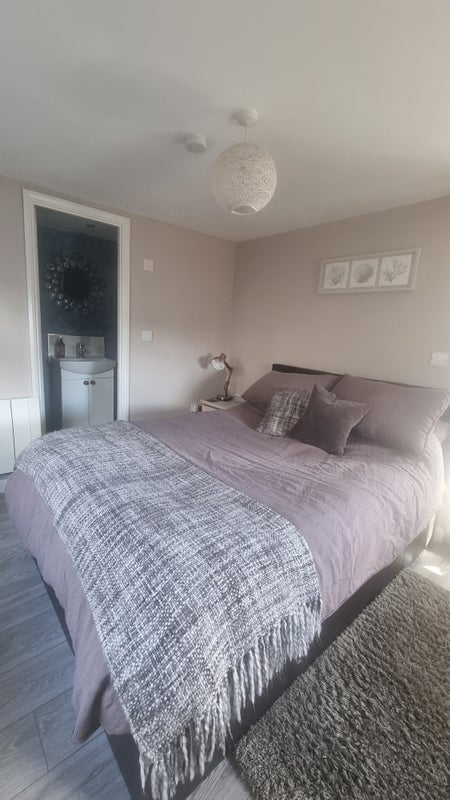 Light, modern furnished rooms attached to a family home on a quiet estate. The space offered includes a bedroom, small ensuite shower, comfortable living space including kitchenette, private entrance and small off road parking space.