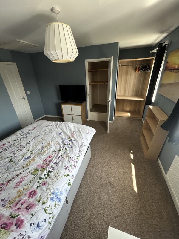 The property is located about a 5 minute walk to the train/bus station. It’s a nice and quiet area. The room is furnished and comes with a tv that’s already set up with Netflix, Disney plus and Amazon.