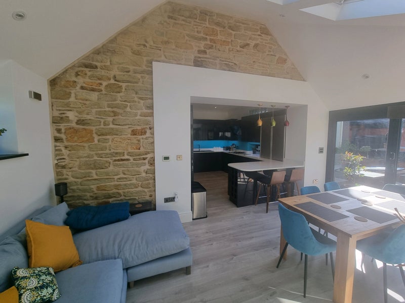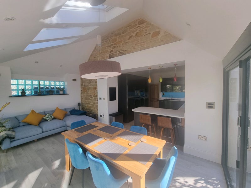 There is a large communal living room, dinning/ seating area and enclosed garden