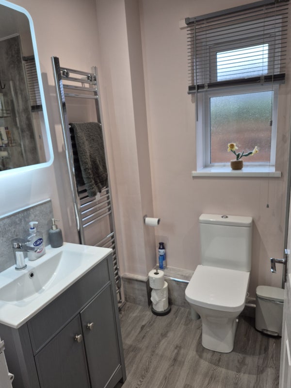 2 rooms , newly decorated , one small single room, one double room. Shared modern bathroom , full shared use of remainder of house & facilities . Strictly single occupancy.