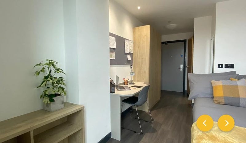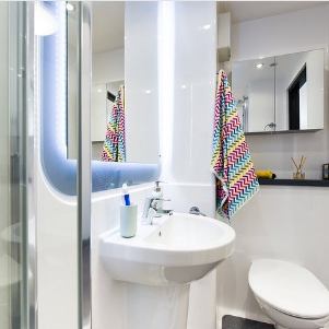 It has a communal lounge, study room, cinema room, secure outdoor courtyard, full social calendar, high speed wifi in every room, laundry room and staff on site 24/7. This Silver Ensuite is in a beautiful modern flat with a communal kitchen and living space, and only up to 6 individual ensuite rooms per flat.