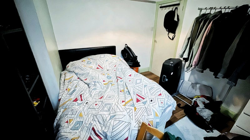The bedroom has a single bed, 4 feet standing mirror, and storage.