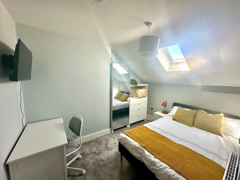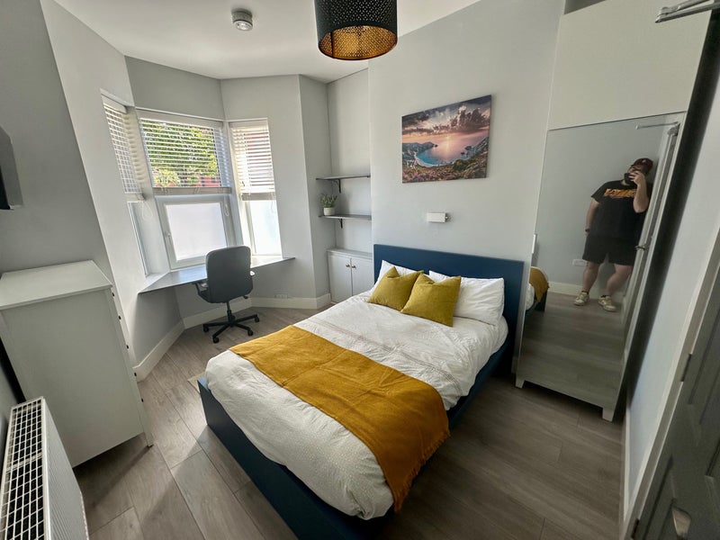 Fully brand-new furnished modern rooms including double bed, HD TV, wardrobes, chest of drawers and desktop.