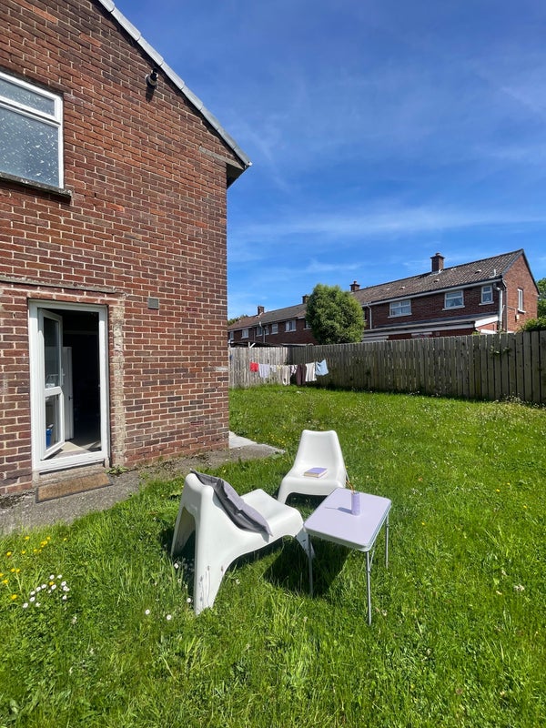My house is situated in a quiet estate off the Knock Road and has a big living area, on street parking, a huge garden, 1 shared bathroom & toilet and an office where you can store stuff/ work from. The bedroom is big with king size bed and is furnished.