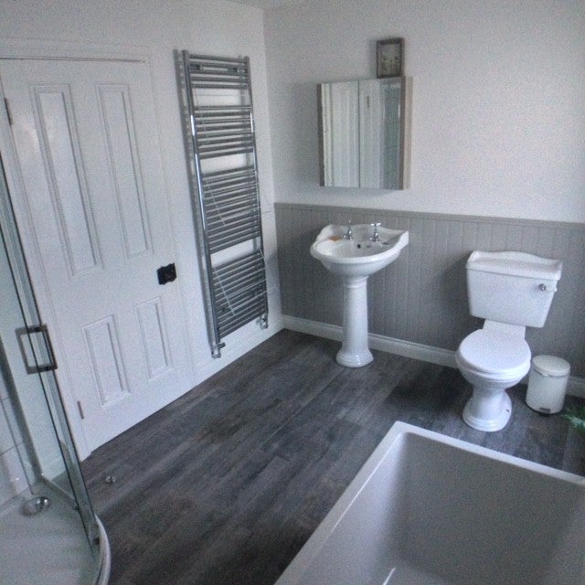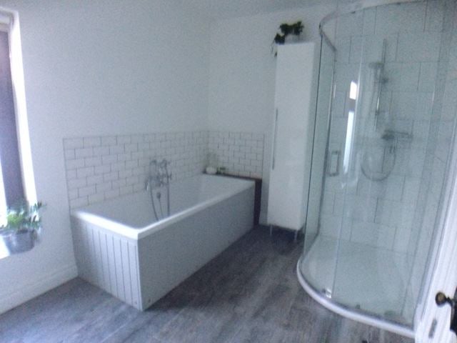 New kitchen designed to accommodate shared living. Well equipped with washing machine/tumble dryer/dishwasher. Bathroom with walk in shower and separate bath, additional downstairs toilet. Living room and good sized outdoor space.
