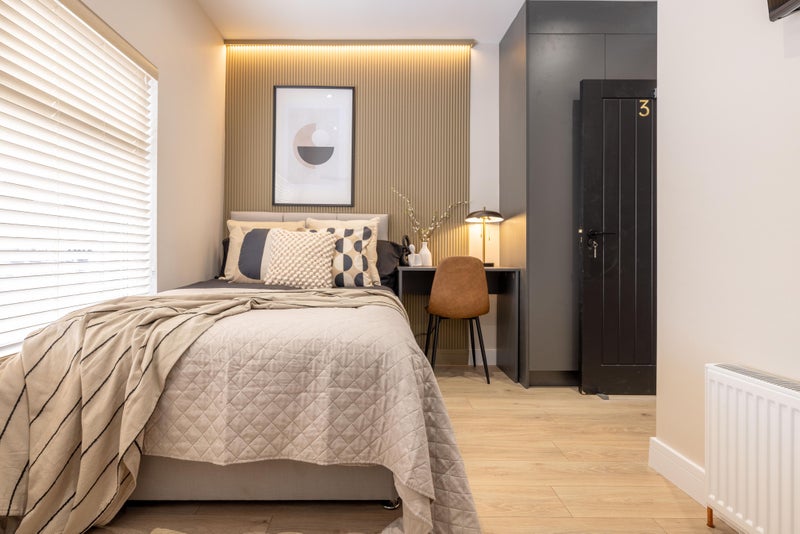 Innov8 Rooms are delighted to present this stunning room in a beautiful HMO to the rental market. Located in a prime residential area, this high-end co-living offers modern living spaces perfect for professionals seeking comfort and style. The property has been designed with tenants needs in mind with usb sockets and comfortable work from home spaces.