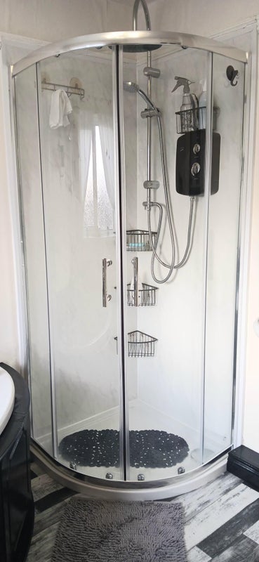 Fully fitted with all standard appliances, cooker, fridge/freezer, kettle, toaster, microwave, washing machine, electric egg boiler, electric frying pan, air fryer, slow cooker, panini machine & halogen oven, also fitted with a small breakfast bar.