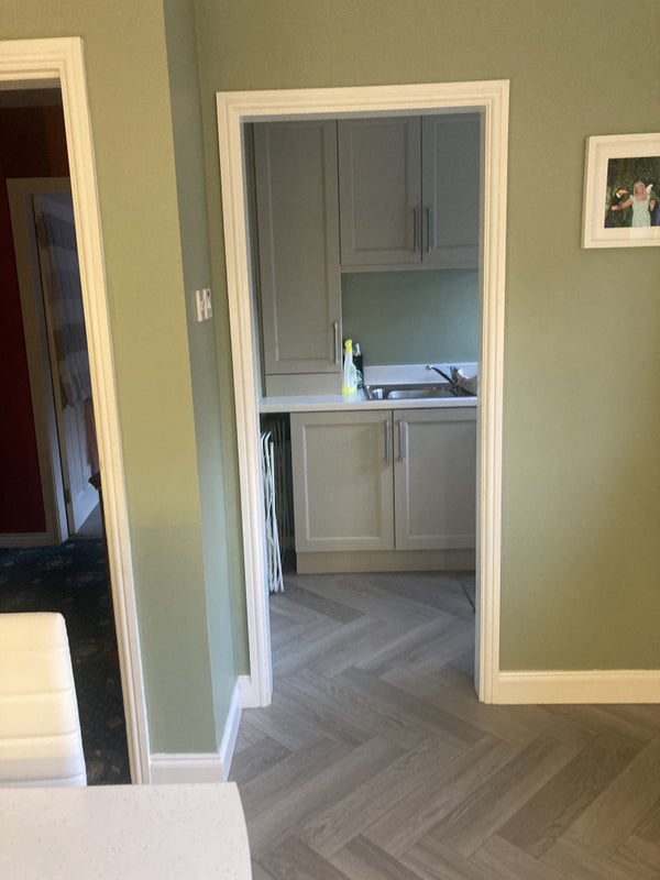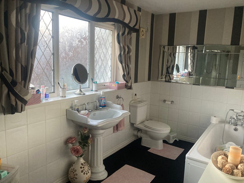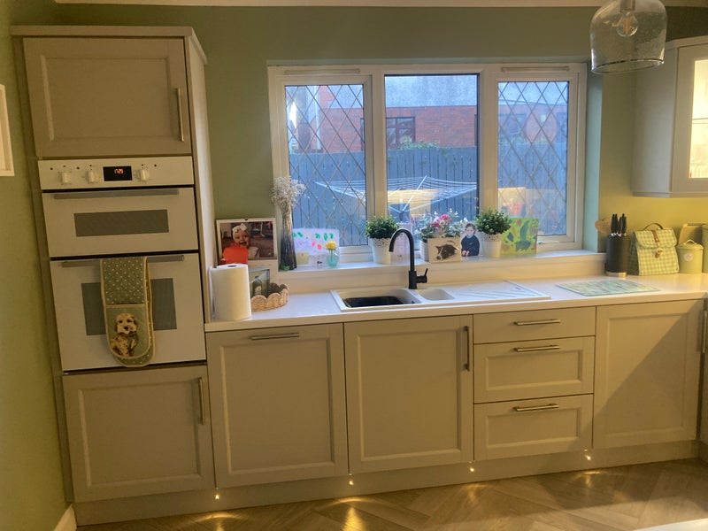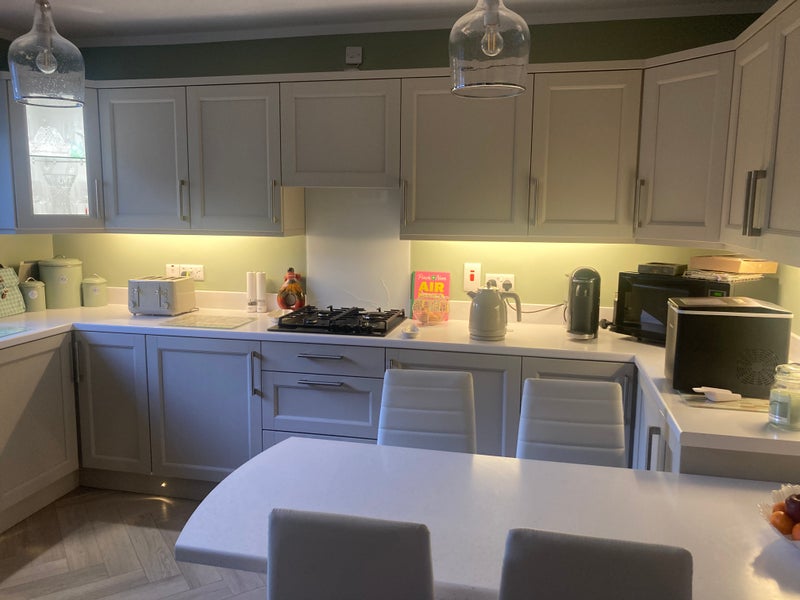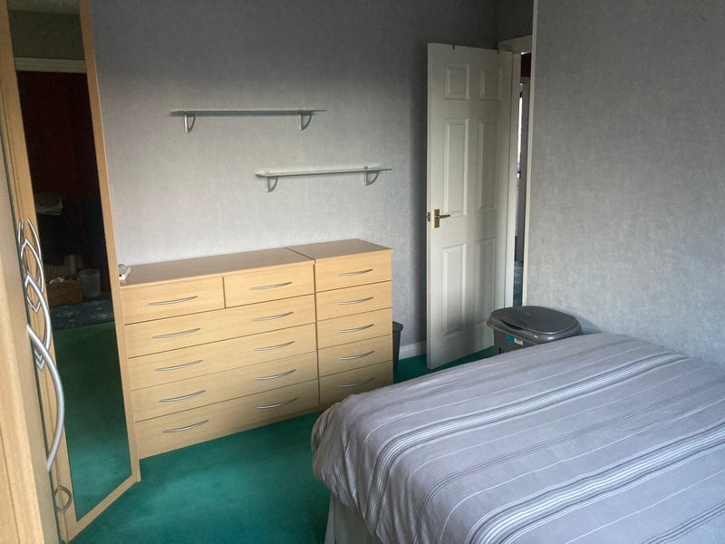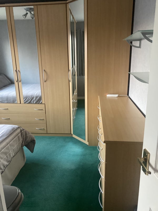 Modern double room with lots of storage space. Access to own large bathroom with bath and power shower. Access to large kitchen. All bedding, towels, cooking utensils included. Home is located in a quiet cul-de-sac, large driveway for parking facilities and some storage available in garage. Train station a 6 min walk - train running to Belfast city centre (15/20 mins) or north coast direction. Also bus services a 3 min walk. Local shops 6 min walk .