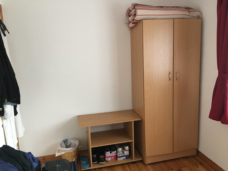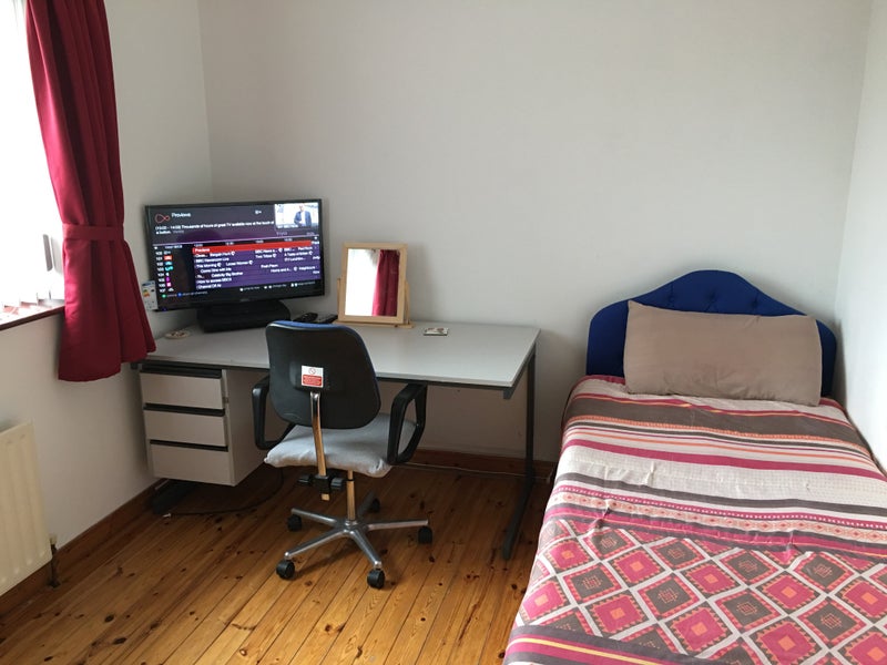 The room measures 3.60 x 2.60 metres, and is fully furnished, presently with a single bed, large office-quality desk and chair, and a single wardrobe.