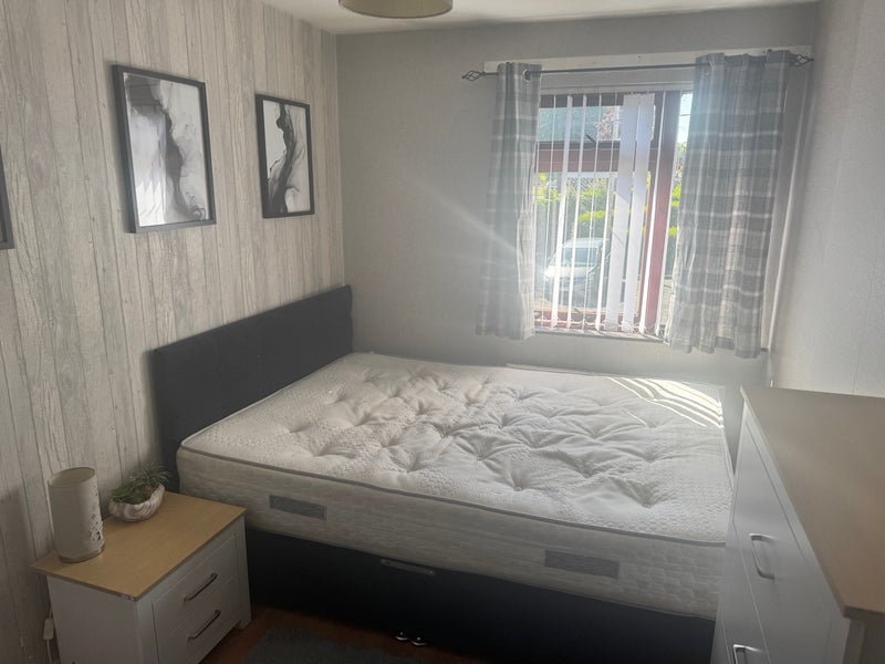The room comes furnished with a double bed, wardrobe, chest of drawers and bedside table.
