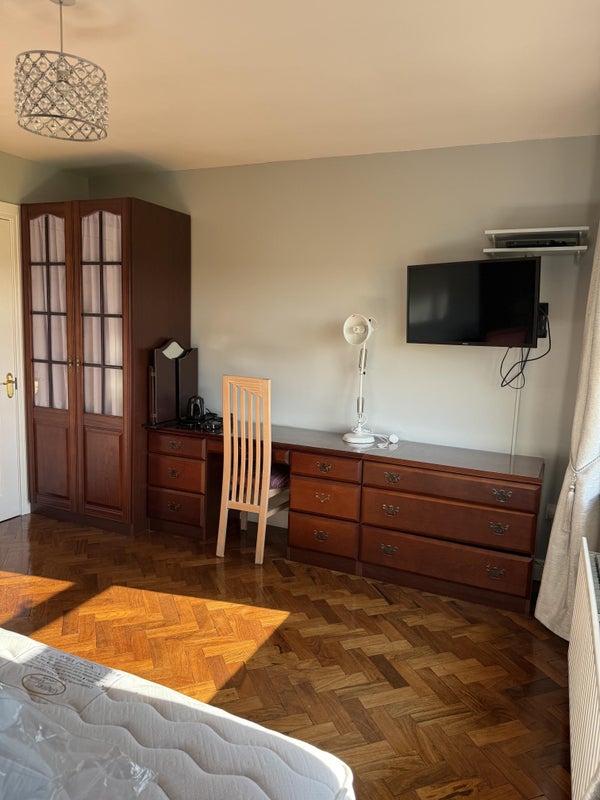 Well furnished large bedroom with own en suite. Flat screen TV and Sky Minibox with full Sky Sport Packages. Bed linen and towels provided. Private parking. Full fibre broadband.