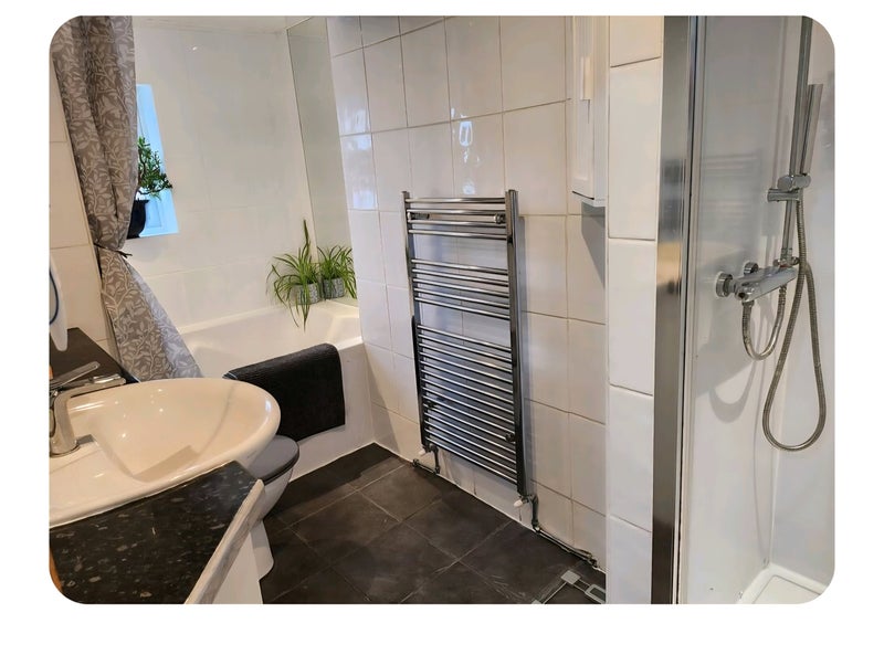 Friendly landlady plus her dog and cat live downstairs. Full time lodger lives in larger bedsit room. Bathroom is shared with Lodger.