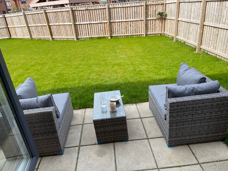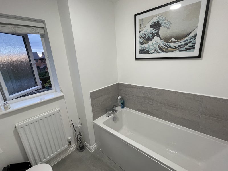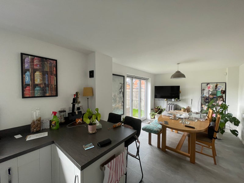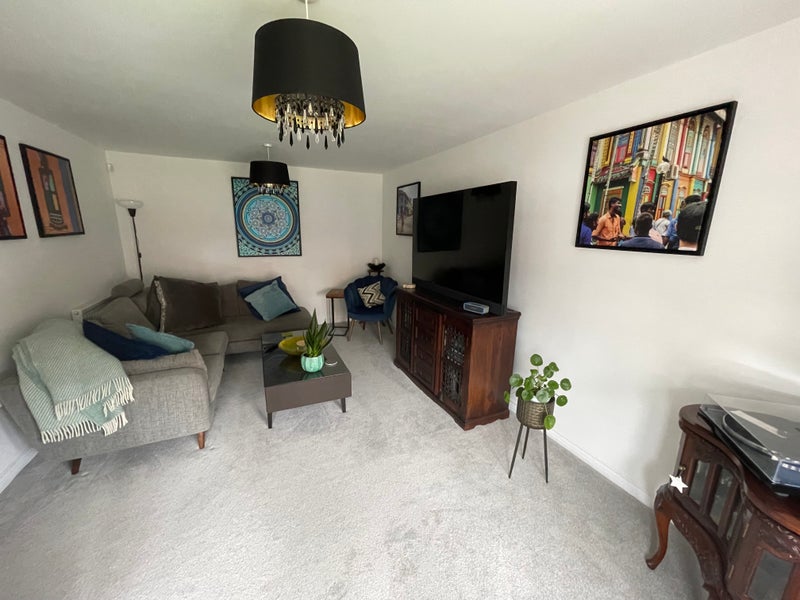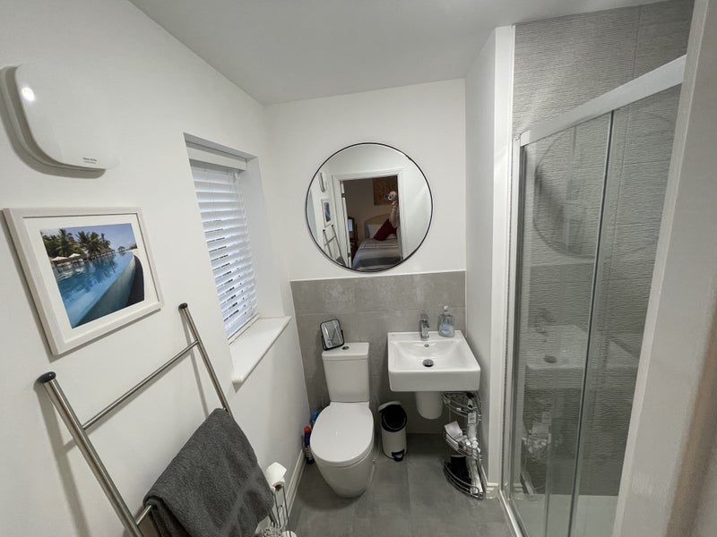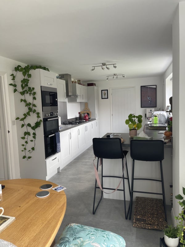 There is a large garden, living room with 65’ Sky Glass TV and kitchen diner with dining table and breakfast bar stools, dishwasher and modern appliances, washer, dryer etc, and a large driveway with space for 2 extra cars. The garage is not available for use.