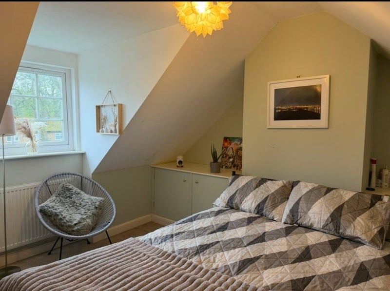 Cosy large room with a shared bathroom with one other, including a shower and toilet.