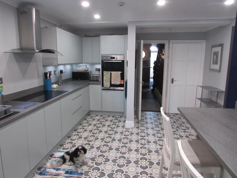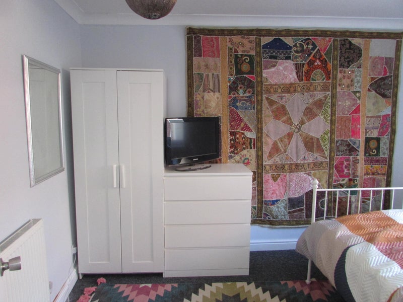 3 large rooms in a very large house. 3 bathrooms, Large, well-equipped kitchen. Washer and separate dryer. on and off-street parking, gardens front and back. Full fibre broadband.