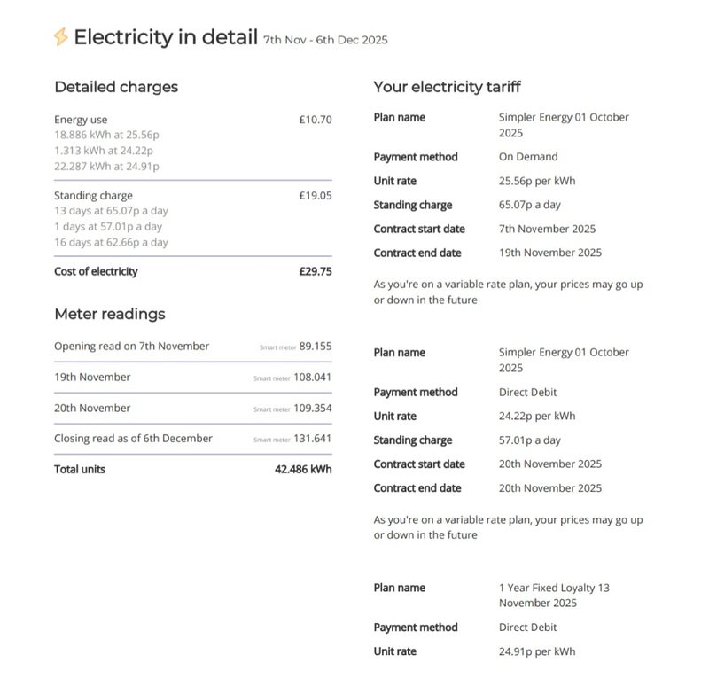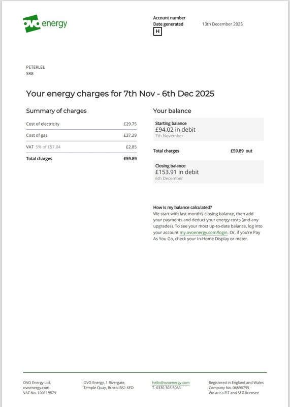 - Bills: Not included in the rent. Bills are shared between you and the other roommate and usually cost around £30 per month each (as shown in the photo below).