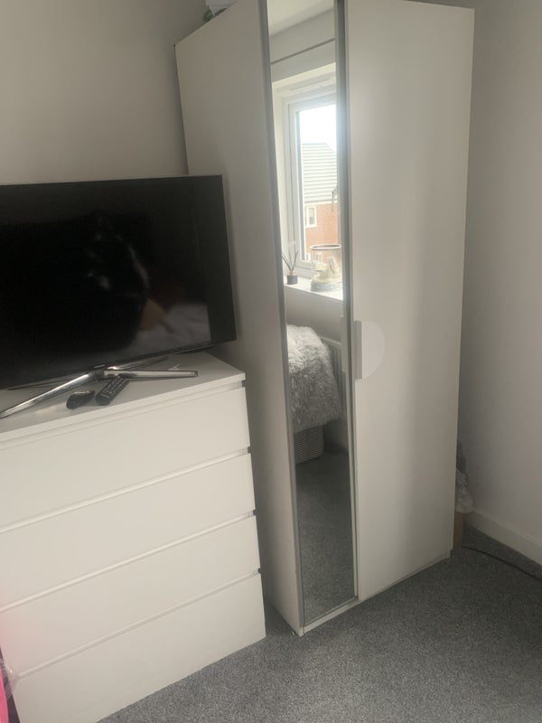 I have no preference in terms of a flatmate but I do ask that you are clean and respectful of the property. If you smoke then you can do so outside but no smoking inside (including hanging out of window). Viewings are welcome most days. There is a washing machine at your disposal as well as shared use of fridge and freezer. The room is furnished with a double bed, wardrobe, and bedside drawer. There is also a TV, though you’ll need a firestick or equivalent as unable to get analogue channels.