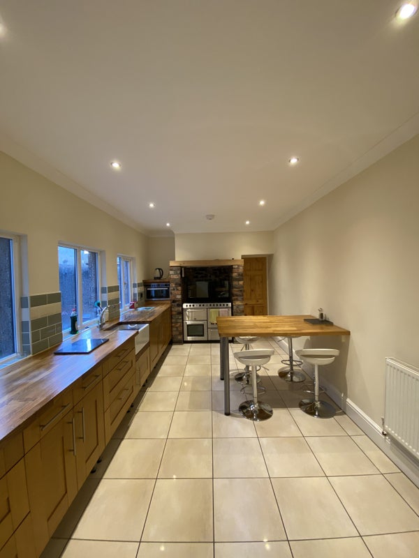 The house has 5 bedrooms, a kitchen, a utility room, a sitting room with 4k TV 1 shower room, 1 bathroom and 2 other toilets. The room offered is not the one in the photo, it is a large double room.