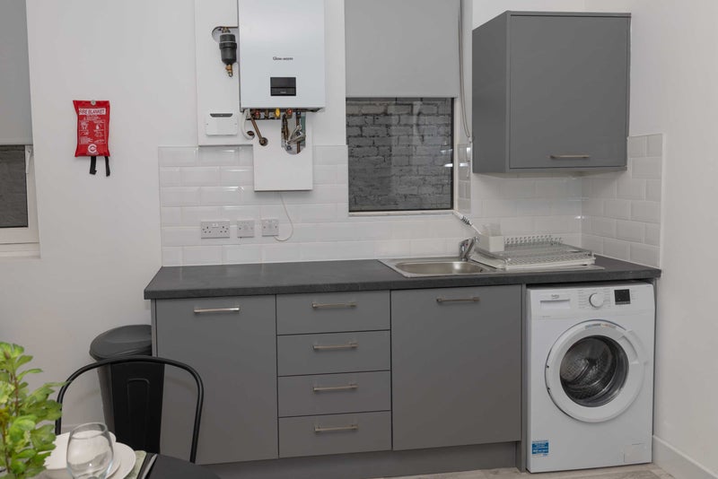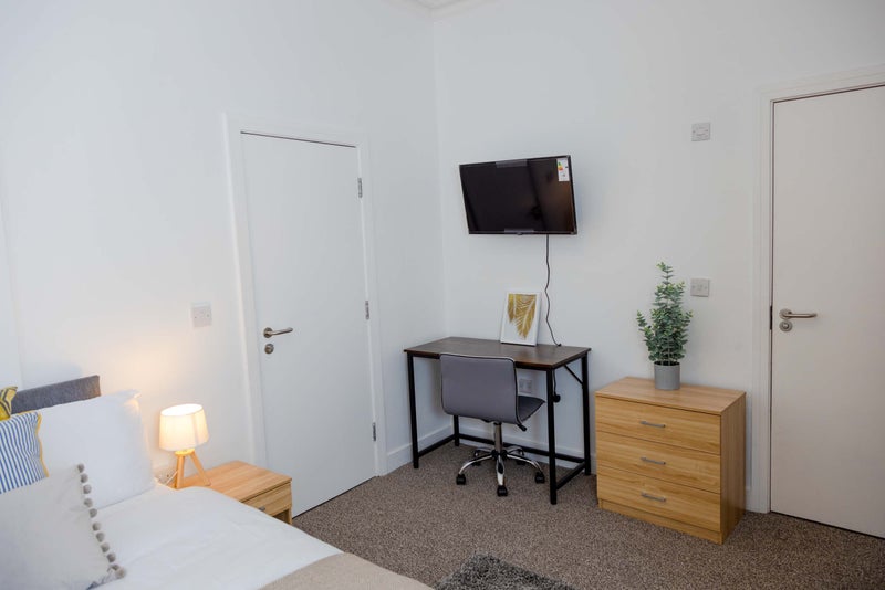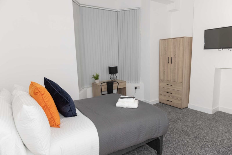 We are one of the only companies that fully kit out our units from televisions down to plates and knives and forks. The idea is that you arrive with your bag, towels and bedding, everything else is provided. The rooms include full broadband and hardwired WI-FI connection, double bed, wardrobe, desk, chair, bedside cabinet and a chest of drawers.
