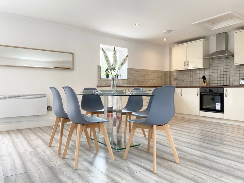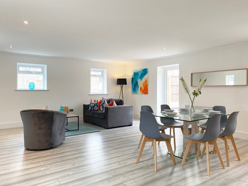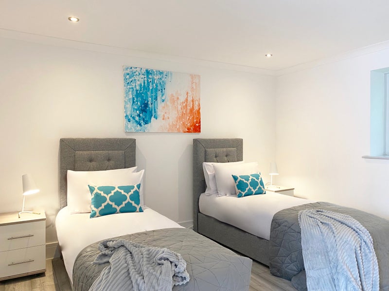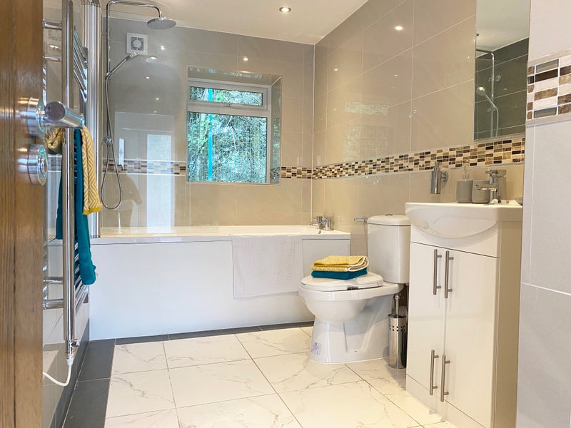 One room with shower ensuite, another large bathroom. Private back garden with rattan furniture.