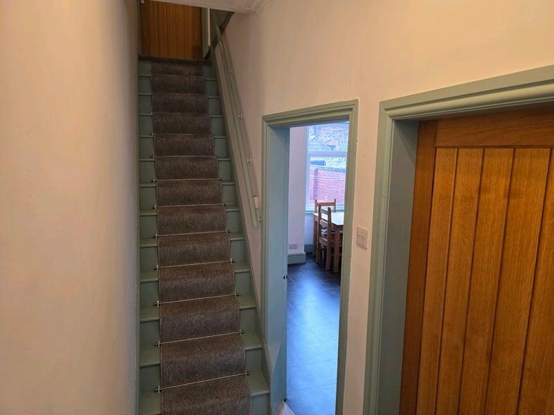 It is shared with one other person only as there are two in the house and has storage for each tenant. There is a overhead power shower running off the new combie boiler with good pressure and great lighting.