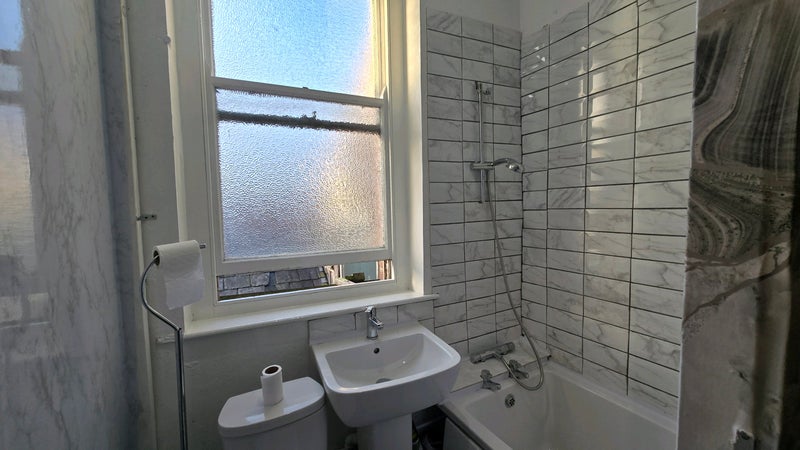 One of the standout features of this studio is the spacious bathroom, which is larger than typical studio layouts. It offers plenty of room to move comfortably and is separated from the main living area for added privacy.