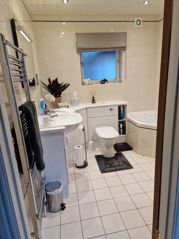 One Double Room for single occupancy, with bath, toilet and shower adjoining, King sized bed! Bedding provided. Room cleaned weekly. Full use of large kitchen/diner, own fridge and utensils.