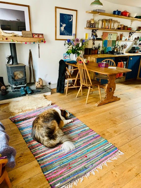 I am studying for a Masters as well as working freelance. Moose my dog is very friendly and loves cuddles. There’s a lovely little yard out the back and a shed. Two mins walk into town and easy access into the Lakes. Looking for someone who is considerate, tidy and chilled out.