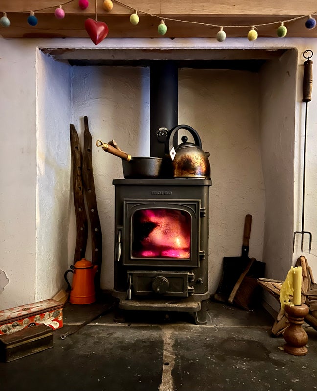 Downstairs is an open plan living and kitchen area as well as a log burner.