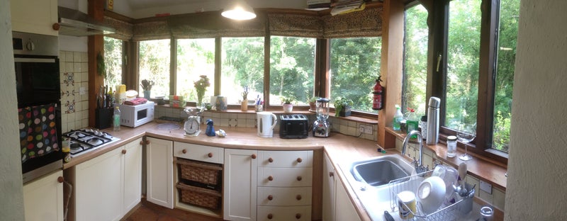 The house has large, light living and dining rooms, a good-sized kitchen and a conservatory. There's also an outhouse where you could store things including a bike, and use our bouldering wall.