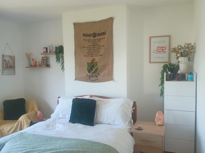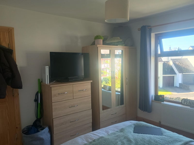 We have a light and airy double room furnished with shared kitchen/living space, garage with drying room, garden space and 2 bathroom facilities. All bills included: gas, water, electricity, council tax, WIFI, no t. v licence.