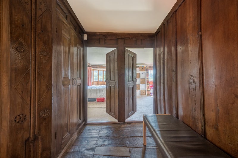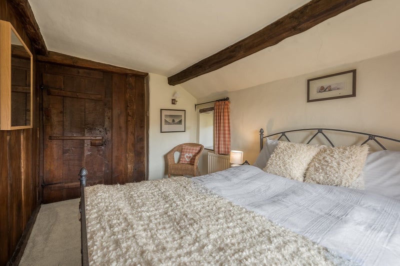 In the historic 300 year old house, we have a room with a new double bed. It is lined with ancient oak panelling and has an old window seat with oak shutters. The room has amazing views over the valley. There's a private bathroom with a bath/shower, though it is not attached to the bedroom.